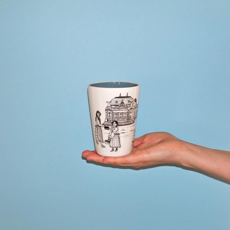 With great attention to detail, a humorous play on clichés, and typical regional characteristics, the Sächsilüüte mug becomes a small piece of illustrated tradition.