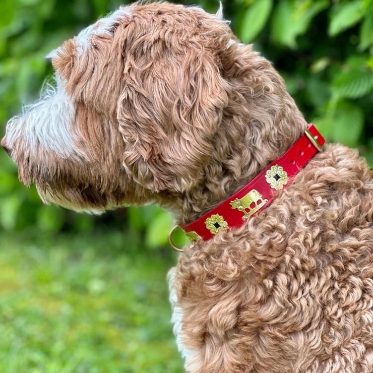 Le collier pour chien Appenzeller est décoré d`ornements en laiton.