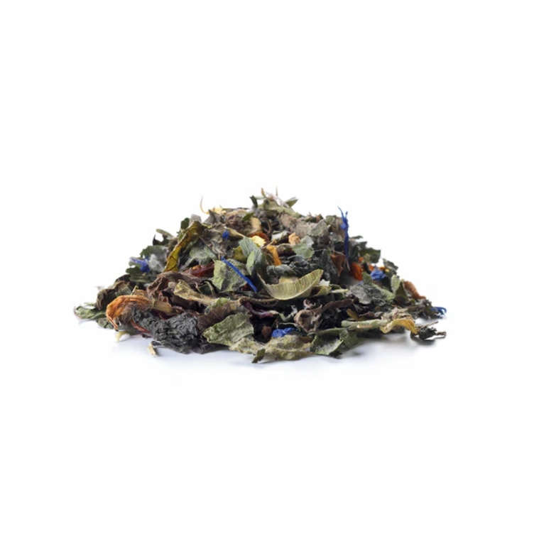 Ce mélange se compose de diverses herbes telles que l`ortie, la mélisse, la menthe poivrée et la menthe pomme. D`autres fleurs et du trèfle rouge, associés à un peu de cynorhodon, composent également ce mélange unique.