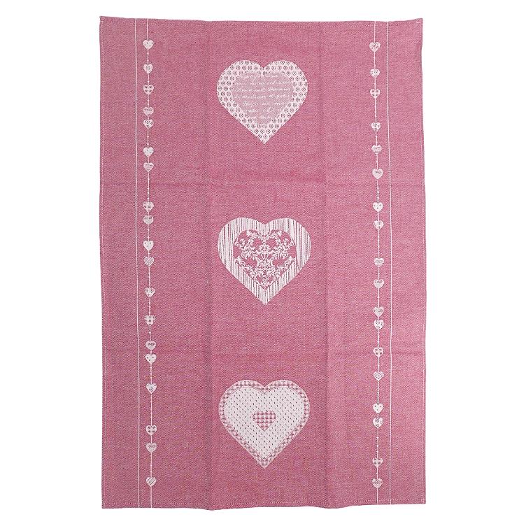 Torchon de cuisine coeurs bordeaux 50x75cm