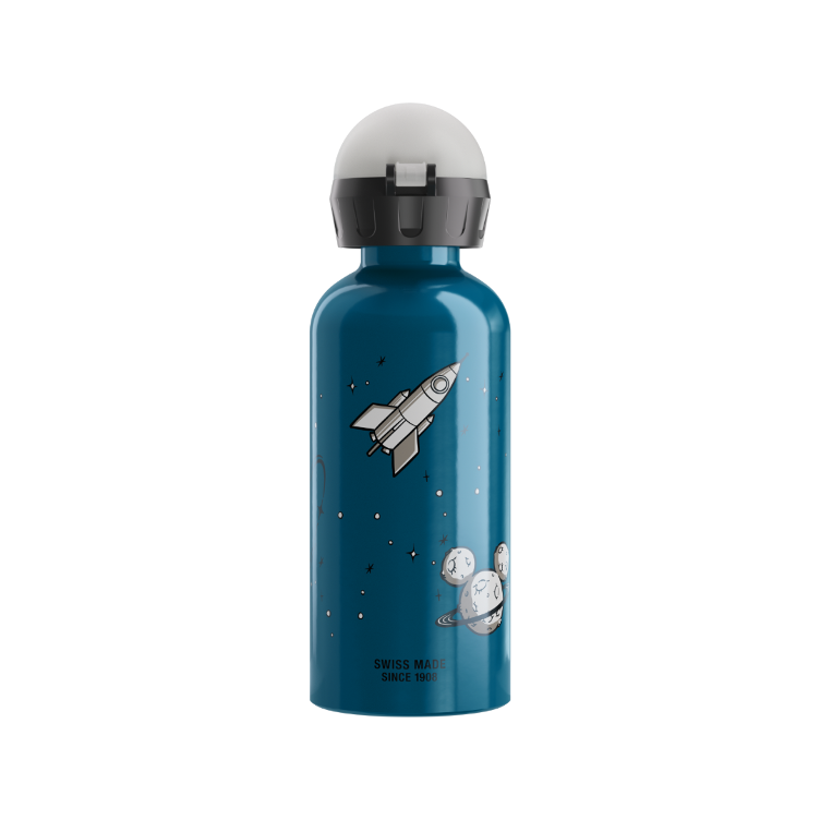 Decolla e scopri il mondo che ti circonda con questa bottiglia da 0,4 litri raffigurante l`astronauta Mickey! Le dimensioni perfette per i giovani esploratori intrepidi e una robusta struttura in alluminio leggero, già riciclato al 100%. Il coperchio anti-perdita impedisce fuoriuscite accidentali, anche quando la bottiglia è appoggiata o capovolta. E i componenti possono essere facilmente smontati per la pulizia. Prodotta in Svizzera, questa bottiglia è estremamente resistente e potrà accompagnare il tuo bambino a scuola e nei giochi per anni a venire. E come sempre, tutti i materiali sono privi di BPA e ftalati. Per la salute del bambino e la tranquillità dei genitori.
