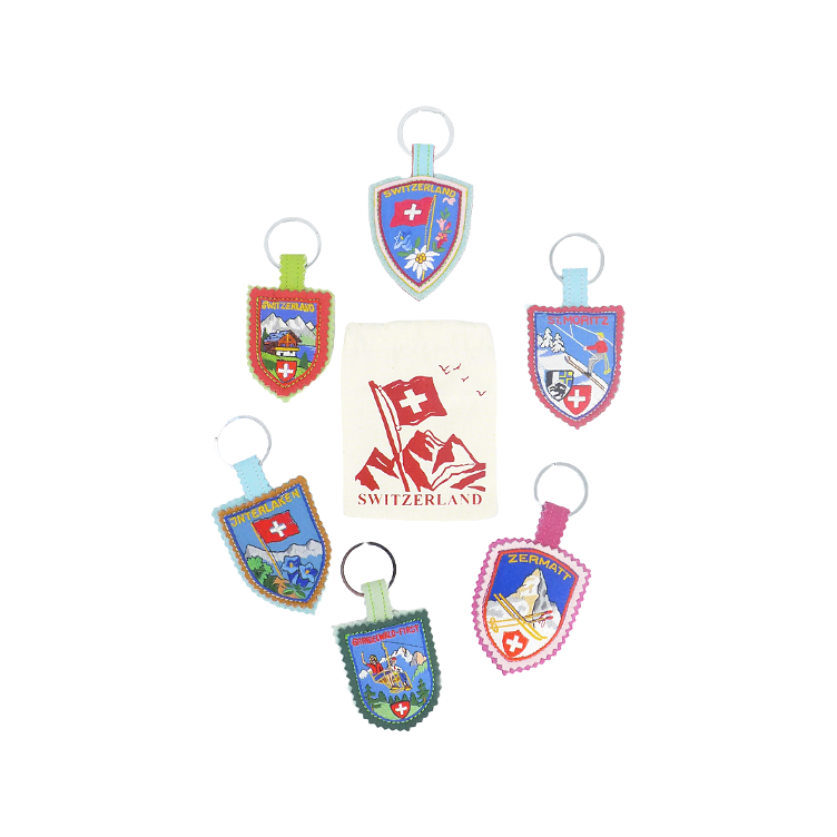 Lussuoso portachiavi vintage fatto a mano in Svizzera con antico stemma ricamato tratto dai campionari originali.