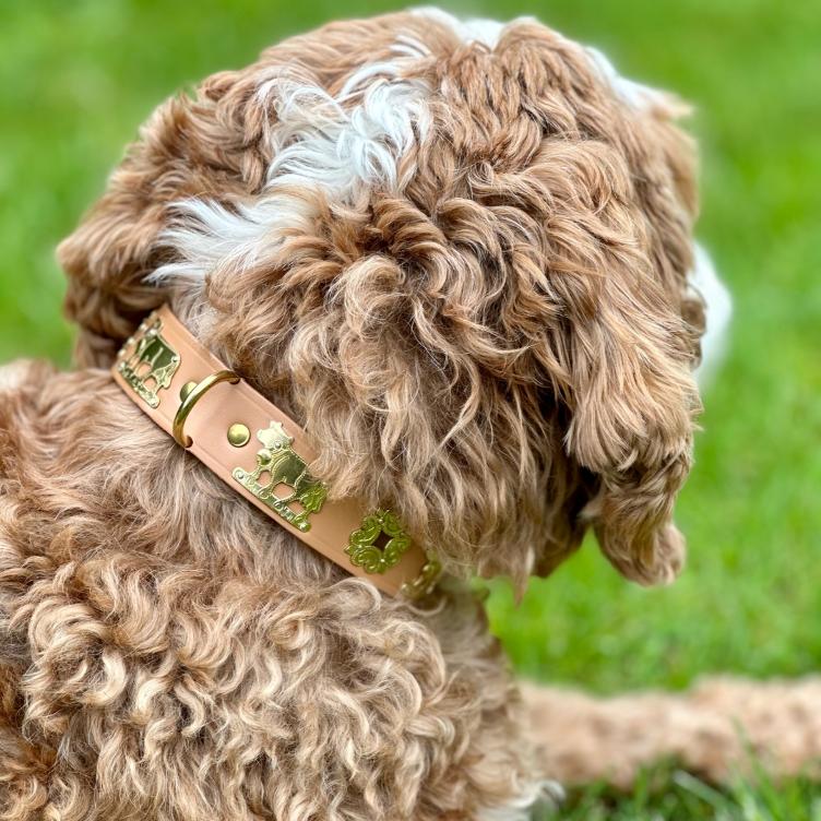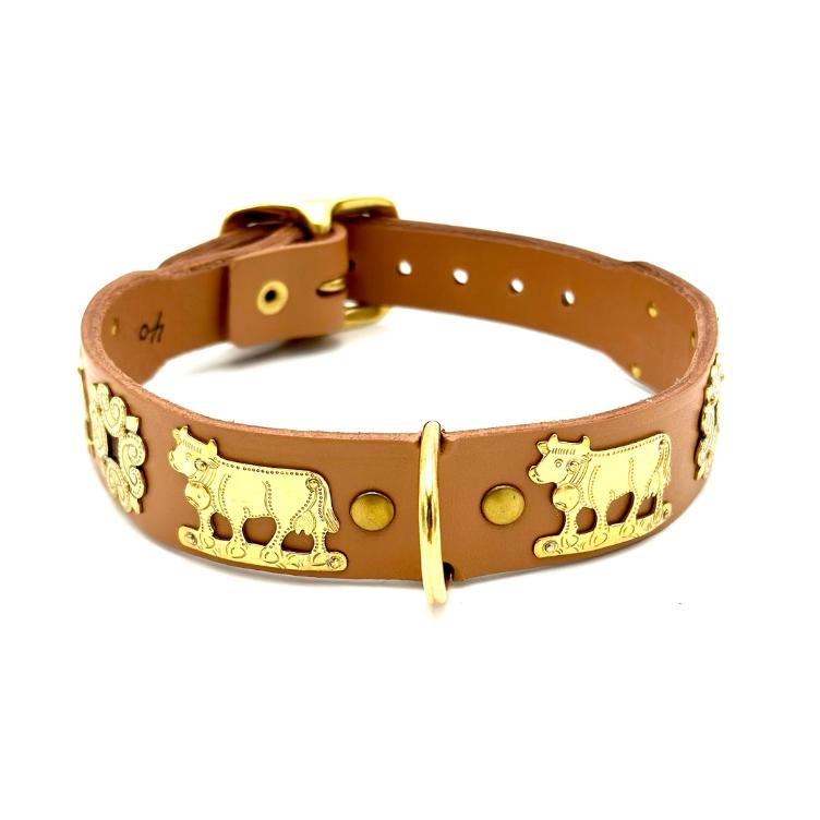 Das Appenzeller Hundehalsband ist mit Messing Verzierungen bestückt.