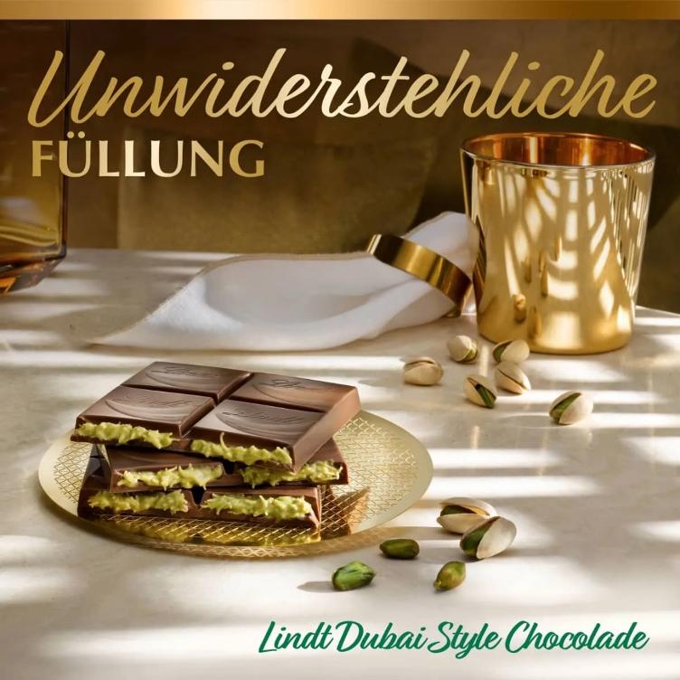 Entdecken Sie die begehrte Lindt Dubai Style Chocolade: Erlesene Zutaten verleihen der Lindt Dubai Style Chocolade eine einzigartige Note und machen jeden Bissen zu einem Geschmackserlebnis. Das Besondere ist die Textur: Zartschmelzende Lindt Milchschokolade umhüllt eine unvergleichliche Füllung mit einem besonders hohen Anteil von feinstem Pistazienmark sowie knusprigem Kadayif. Bei Kadayif handelt es sich um feine Teigfäden, auch als Engelshaar bekannt, die in levantinischen oder arabischen Desserts eine lange Historie haben. Sie sorgen für die knusprige Konsistenz der beliebten Schokoladensorte. Ideal zum Teilen mit Familie und Freunden, oder einfach zum selbst Geniessen.